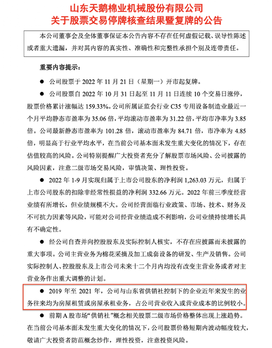 11月21日盘后,上交所一则通报剑指因沾上“供销社概念”而连拉十一个涨停板的大妖股——天鹅股份。