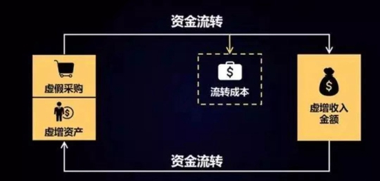 前两种虚构资金流的手法最大的缺陷在于其资金流本身是虚假的,所以很容易被识别,于是造假者对其加以改进,通过构建资金循环伪造“真实”的资金流,达到同时虚增收入、资产的目的。