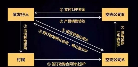 下面以某发行人收购林地使用权为例,阐述发行人是如何通过设立空壳公司、构建资金循环,达到虚增收入、虚增资产的目的。