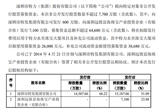 两周后,特力A的“重大事项”浮出水面——公司拟向特发集团和远致富海进行定向增发。
