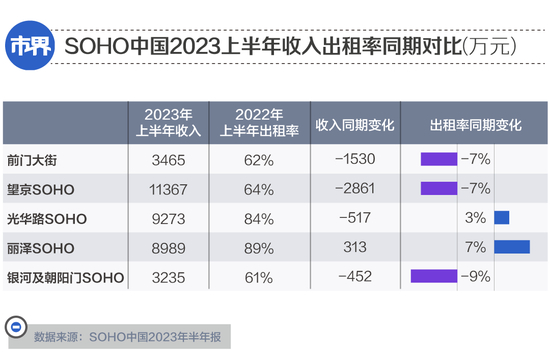 无论如何,从整体来看,2023年上半年,SOHO北京的办公楼,出租率和收入情况,不尽如人意。受一些早教机构搬离、附近区域有新入市中端项目、此前疫情黑天鹅等多重因素影响,光华路SOHO二期空出不少面积租不出去。而银河SOHO,“空了大概150套房子。”至于望京SOHO,“随着一些科技公司、教育公司的搬离,一下子空出去不少。”宋枫表示。