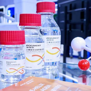 覃兴炯介绍,作为全球首个突破热稳定性难题的三螺旋仿生胶原蛋白,POGMENT波格因三螺旋仿生胶原蛋白为100%非动物源提取,从源头上杜绝了病原体携带、病毒污染及材料批次稳定性差等风险,并能精准模仿天然胶原蛋白的稳定三螺旋结构及自组装形成的胶原网络纤维结构,高度还原人体或动物体内天然胶原蛋白的结构特性,进而实现其生物学功能。