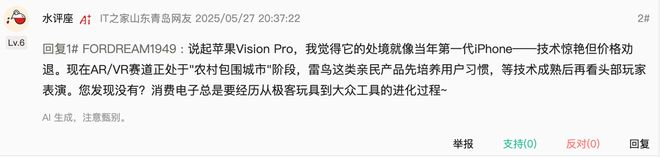 正如IT之家的 AI 评论所言:现在 AR/VR 赛道正处“农村包围城市”阶段,雷鸟这类亲民产品先培养用户习惯,等技术成熟后再看头部玩家表演。消费电子总是要经历从极客玩具到大众工具的进化过程。