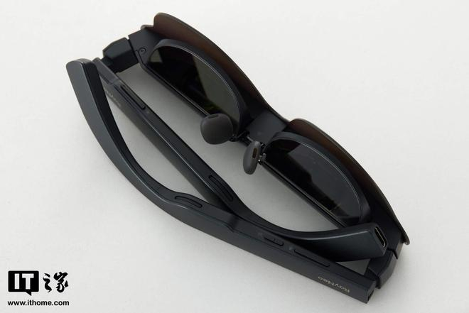 细节上,雷⻦ Air 3s Pro 左右镜腿各有两处扬声器,左镜腿下方右音量键和菜单功能键,右镜腿下方则是亮度调节按键,尾部还有一枚支持 DP 高清格式的 USB-C 接口。