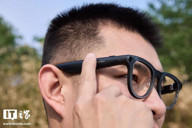 这种设计对笔者这类 i 人非常友好,戴上眼镜之后不会成为人群中的“显眼包”,因为从外面看起来,雷⻦ Air 3s Pro 就是一个造型帅气的普通墨镜。