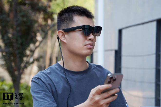 并且,这块屏幕和你的眼睛始终保持同轴状态,你脑袋往哪边转,屏幕就跟着往哪边转,一直都在你正前方,由此带来了极强的沉浸感。举一个不太恰当的比方,雷鸟 Air 3s Pro 带来的感受,就像是环球影城的 VR 游戏体验一样。
