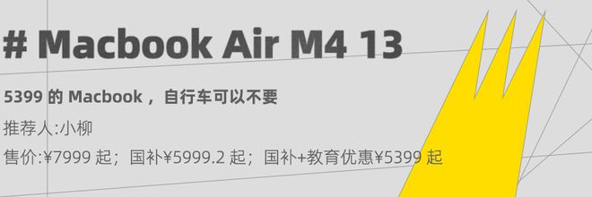你看这无论是手机主机还是笔记本,叠加上国补教育优惠之后都非常香,这不就有人算过,原价 7999 的Macbook Air M4 13 , 16G + 256G 版本,各种优惠算下来仅需 5399 。。。