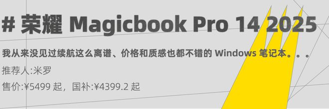 荣耀今年的笔记本,全系都来了个以下犯上的大升级,这次想给大家推荐的 Magicbook Pro 14 也不例外,处理器升级到了英特尔的二代 Ultra ,屏幕用上了 OLED ,内存 24GB 起步,92Wh 的大电池。。。
