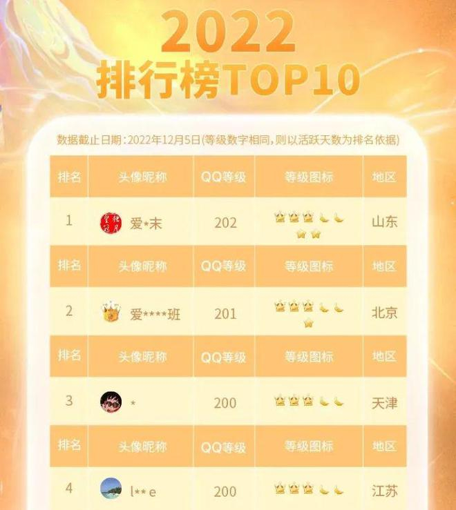 2022年12月,腾讯首次公布全球QQ等级排行榜,“爱芥末”便位列榜首,等级为202级。
