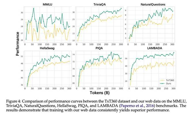 经过上述处理流程,hi lab 团队得到一份高质量的预训练数据,并经过人工校验和实验验证该数据质量显著优于开源 TxT360 数据。