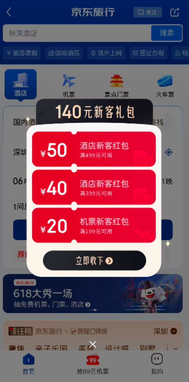 京东酒旅最近也在招聘,并在平台发放酒店、机票的补贴券,新客共可领140元礼包。参考美团,酒旅是抬高本地业务利润的好方式。