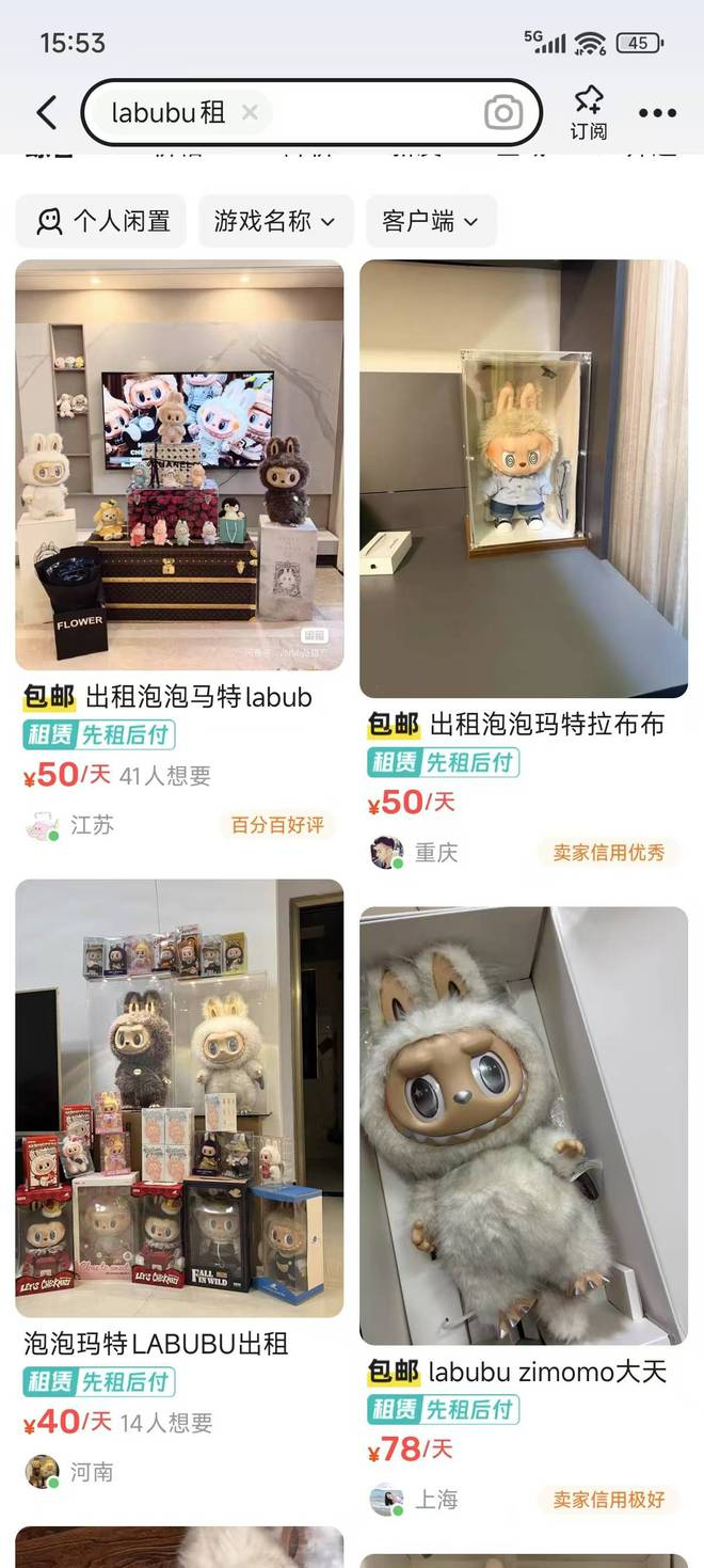 据第一财经报道,有部分卖家表示,LABUBU 作为近期大火潮玩单品,适合拍照出片,租客多为准备聚会或拍摄社交平台照片、短视频等,相比高价费心购买,租赁能降低尝鲜成本。