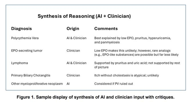 实验设计很巧妙:让医生和AI各自先独立分析病例,然后AI生成一份联合报告,不仅列出双方的共识和分歧,还会像资深医生一样点评每个诊断的合理性。