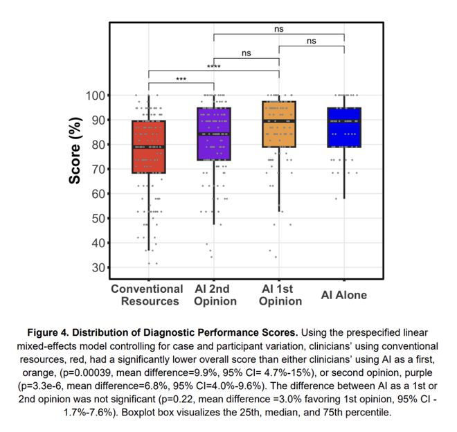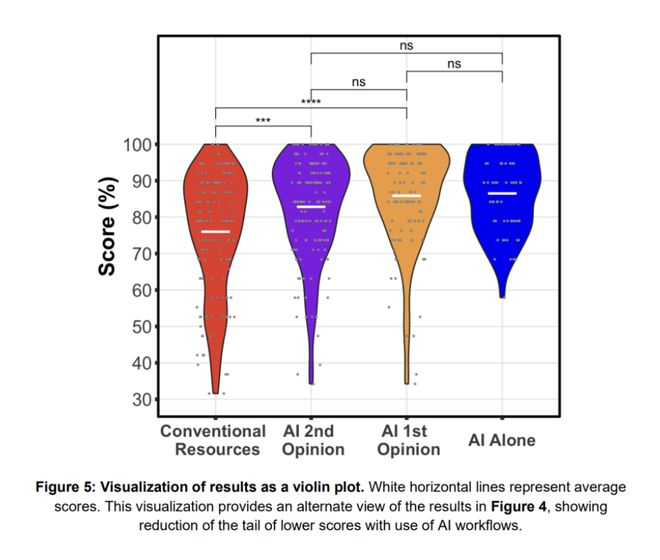 研究结果令人振奋,AI协作组的医生表现明显优于仅使用传统工具的对照组。