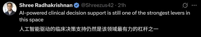 「AI驱动的临床决策支持,仍然是该领域最有力的杠杆之一。」