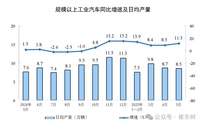 分产品看,2025年5月份,汽车日均8.5万辆,增11.3%,考虑到2024年1-5月基数较高,今年增速的表现很强。