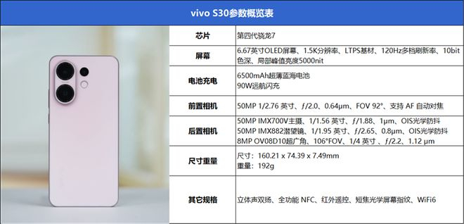 芯片方面,vivo S30搭载了号称高通史上最强的7系处理器第四代骁龙7芯片,峰值性能较上代提升27%,耗降低30%,是目前中端机型普遍喜欢的主流解决方案。
