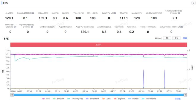 王者荣耀手游在最高帧率下可开启高清画质,一局5V5团战过后,游戏的平均帧率稳定在了120.1FPS。
