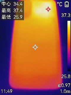 游戏过后机身背面的最高温度为37.4摄氏度。