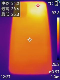 游戏过后机身背面最高温度为33.6摄氏度。