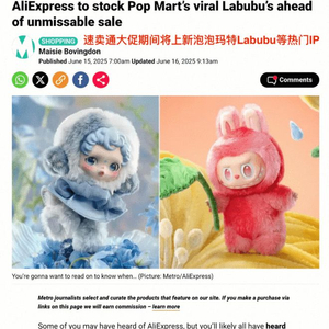 据悉,泡泡玛特2020年就已官方入驻了速卖通。速卖通海外618于北京时间6月16日-6月26日正式售卖,期间泡泡玛特将持续在速卖通上发售Labubu等热门IP新品。(李姝)