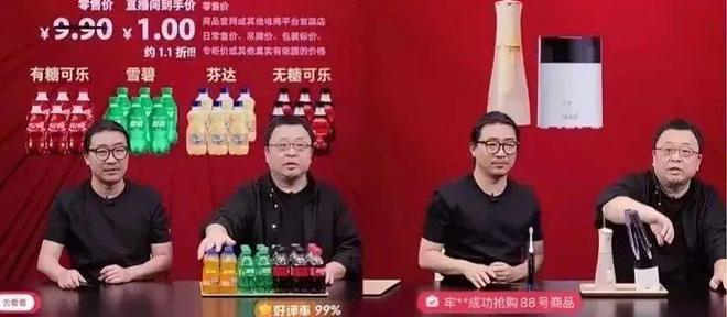介绍产品时,老罗和搭档还可以相互配合,比如将可乐倒在T恤上展示防污能力,甚至可以盛好方便面递给搭档,连罗永浩自己也恍惚。