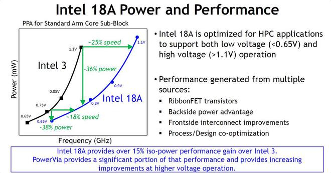 Intel展示18A工艺性能:密度提升超过30%,同功耗下频率提升25%
