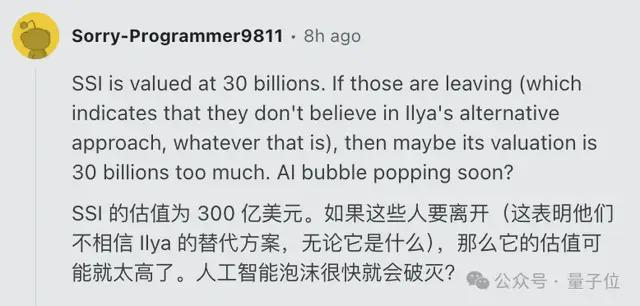 消息称,SSI和Ilya本人拒绝了扎克伯格抛过来的橄榄枝。而SSI刚在今年4月被曝,在新一轮融资中估值达到了320亿美元。