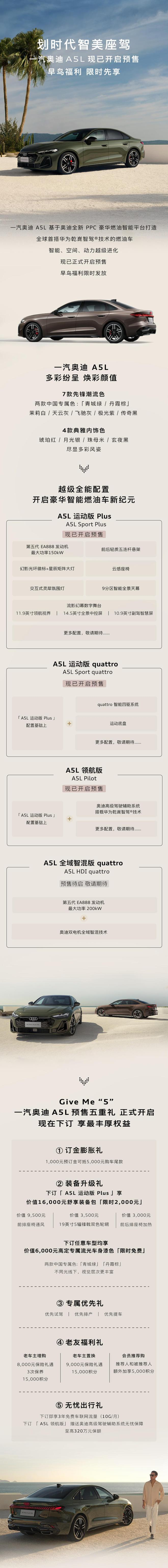 全球首款华为乾崑智驾燃油车,一汽奥迪 A5L 正式启动预售