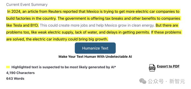 用AI检测器文章检查,如果原创作品被标记为可能AI生成,他会重写直到被判为人类