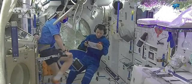 上周,乘组按计划完成了微重力抗阻锻炼设备深度维护、再生生保系统设备检查维护、舱内热控设备维护、应用流体回路循环泵在轨更换等工作。在站务管理方面,乘组完成了物资清点、确认、整理、转移等工作。同时,定期对舱内环境进行清洁。