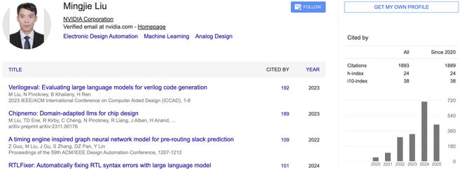 Mingjie Liu,现任英伟达研究科学家,专注于电子设计自动化(EDA)领域的前沿研究。
