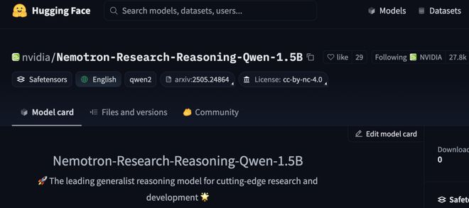 项目链接:https://huggingface.co/nvidia/Nemotron-Research-Reasoning-Qwen-1.5B