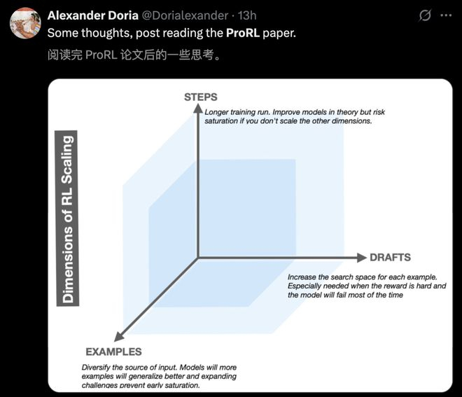 2. 训练时间不足:许多强化学习训练仅在数百步后就停止,远未挖掘出真正的潜力。