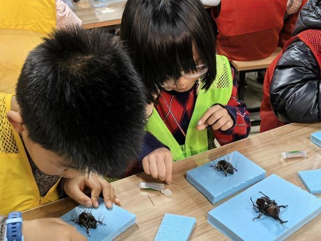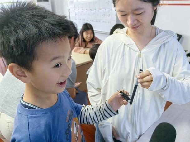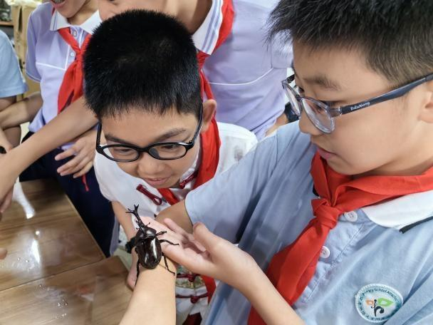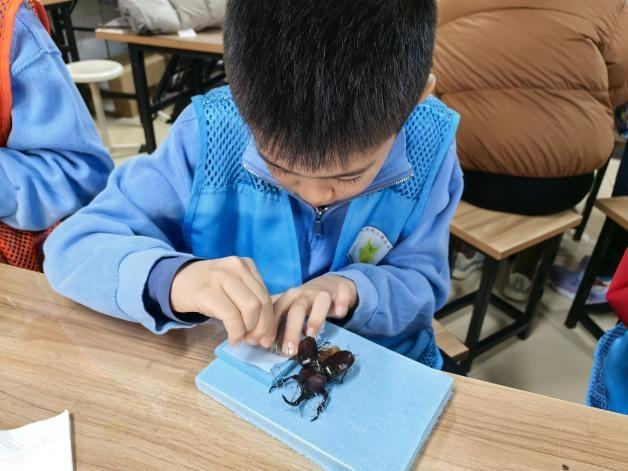 除了标本制作之外,现场还能与甲虫明星——独角仙和锹甲亲密接触!你可以近距离观察它们绚丽的外壳纹理、奇特的肢体构造,感受它们爬行时的独特节奏。在老师的指导下,轻轻触摸它们坚硬的甲壳,投喂新鲜的水果,看独角仙奋力攀爬、锹甲灵巧取食。这不仅是一场视觉与触觉的奇妙体验,更能深入了解这些甲虫的生活习性与生存智慧,让你在与甲虫的互动中,领略大自然造物的神奇与生命的灵动。