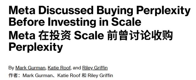 就在昨天,彭博社爆料,Meta在投资Scale前就曾讨论过收购Perplexity。