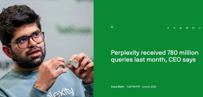 而且,即使规模较小,Perplexity也发展势头大好。公司的搜索查询量正以每月20%的速度增长,并在五月处理了7.8亿次查询。