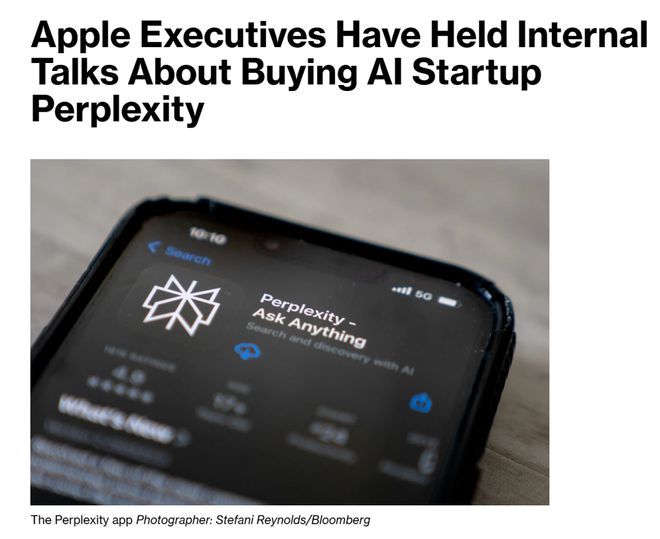 根据彭博社报道,在苹果内部,高管们已就收购Perplexity AI的可能性进行了内部讨论。
