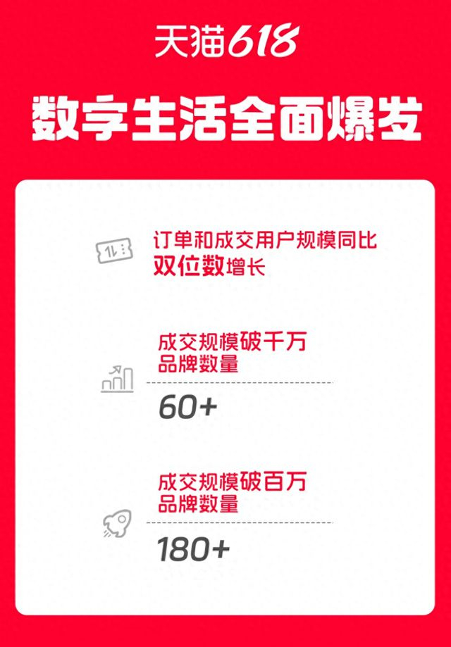 数据显示,数字生活行业订单和成交用户规模同比实现双位数增长。5个品牌成交规模破亿,同比实现超双位数增长;超60家品牌成交规模破千万,超180家品牌成交规模破百万,数量均超过去年,展现出强劲的市场活力。