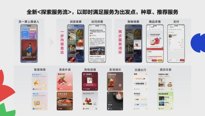 就拿负一屏举例,用户只需要上滑这一个步骤,就能够实现“一步内容直达”。而当用户看到关于《长安的荔枝》这篇剧情解读也想要品尝剧中的“同款荔枝”的时候,第二步可直接点击某宝的岭南荔枝商品页,就能一键下单。