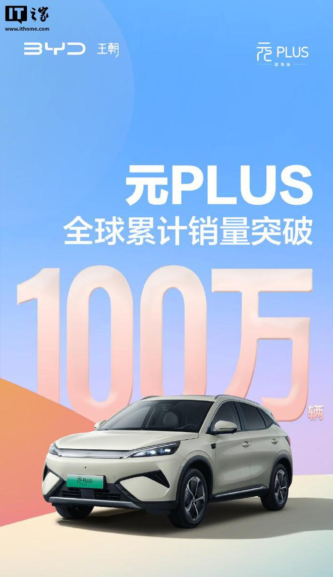 IT之家 6 月 23 日消息,比亚迪宣布,旗下元 PLUS 全球累计销量突破 100 万辆。