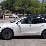 5、目前特斯拉Robotaxi的运营车辆使用的是特斯拉Model Y,车内没有驾驶员,但是有一名安全员坐在副驾驶位。