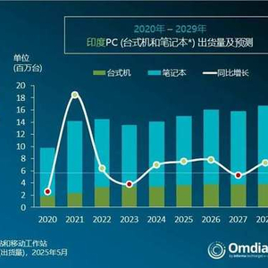 智通财经APP获悉,Canalys(现并入Omdia)最新研究,预计2025年全年,印度PC市场将增长6%,出货量突破1500万台;而平板电脑市场将萎缩8%。2026年起,随着设备换代周期叠加AI就绪政策的推进,整体市场增速有望进一步加快。