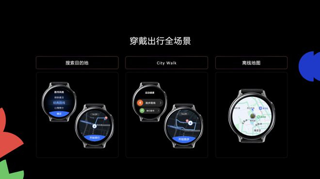 用户无需依赖手机,可直接在智能手表上完成路线规划、实时导航;复杂路口实时提醒;支持离线地图和精准定位。