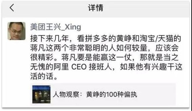 王兴当年没能看到黄峥和蒋凡两个聪明人的较量,这次他有机会跟蒋凡直接过招了。
