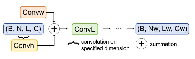 参数生成器的模块细节如下:每个超卷积块包含三个超卷积模块,用于在不同维度上提取并融合特征信息。