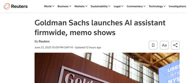 外媒:高盛在全公司推出人工智能助手工具
