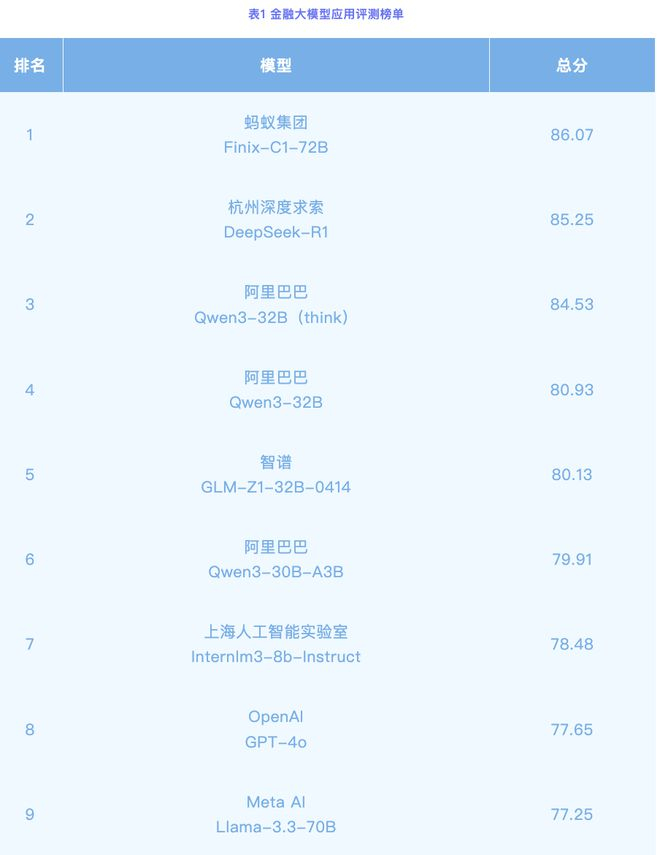 上海财大发布金融领域大模型评测榜单:理财AI“蚂小财”底座模型排名第一