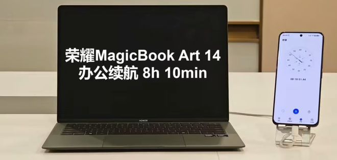 除此之外,荣耀终端股份有限公司 PC 产品总经理朱臣才也发文透露,荣耀 MagicBook Art 14 2025 款在 HONOR Turbo X 调校技术上深挖,通过提升 CPU 电源能效、精细化调校芯片电压、场景自适应电源调度以及整系统能效调优等多方面技术,优化关键耗能部件(如屏幕,存储等)能效,新机的续航时长在上一代基础上提升 2 小时,达到 8h10min。