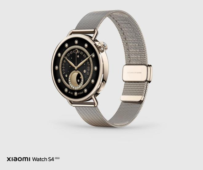 据介绍,该手表为小米首款小尺寸智能腕表,采用“精致表径纤薄表体”设计;其中“流沙金”配色版本配有金色米兰尼斯表带,表冠采用多面切割设计。